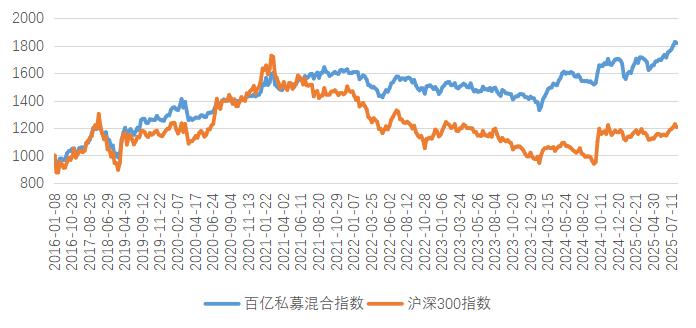据周频净值统计的百亿私募混合指数7月(统计周期为2025/6/27-2025/8/1)收益为3.89%,同期沪深300收益率为3.40%,今年以来收益分别为8.94%和3.05%(统计周期为2024/12/31-2025/8/1)。