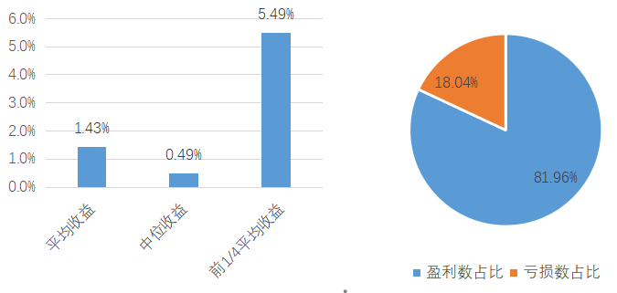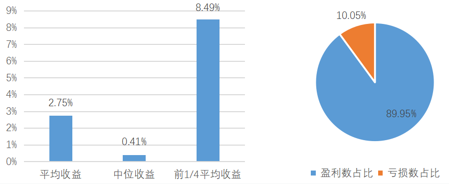 7月套利策略中可转债套利和另类套利表现靠前。其中,由于7月权益市场表现整体向好,带动可转债市场总体价格上升,总成交量有所放大,可转债套利策略处于有利环境。期权:7月金融期权隐含波动率整体震荡上升。相较于隐含波动率,中证1000的20日历史波动率震荡下跌,上证50的20日历史波动率在月初震荡,随后月末出现下跌。由于7月金融期权隐含波动率有所上升,7月金融期权卖方的环境存在一定风险。7月商品期权隐含波动率在月初震荡,月末大幅上升,7月25日到达顶峰,随后大幅回落。高波动品种的月末隐含波动率相较月初有小幅上升。中波动品种的隐含波动率上升幅度较大,随后回落的幅度也较大,月末与月初相比有小幅上升。低波动品种的月末隐含波动率相较月初有小幅下降。由于7月商品隐含波动率变化明显,7月商品期权卖方的环境存在一定风险。可转债:7月共有37只转债达到强赎条件,其中19只强赎,18只未强赎。提议下修的转债48只,5只转债确认下修。7月央行开展4000亿元MLF操作,释放了“保证市场流动性充裕”的信号,外加外资回流,权益市场冲高,宽基指数普遍上涨。受权益市场影响,转债市场也有所回升,转债价格水平较6月上升。但是转债市场上涨幅度整体跑输权益市场,对应的7月转股溢价率下行,截至月底转股溢价率为27.5%。95-135元可转债对应正股20日历史波动率在7月维持低位震荡,截至月底波动率为30.75%,在均值减1倍标准差线附近偏上的位置。7月转债交易热度相较于6月有所上升,转债市场总成交额震荡上升,截至月底总成交额约为806.32亿元。7月转债估值有所上升,自2018年以来目前转债估值处于中等偏上的位置。7月套利策略基金平均收益率为1.43%,收益率中位数为0.49%,前1/4平均收益为5.49%,81.96%的套利策略基金获得正收益。套利策略7月收益分布及盈亏状况,数据来源:朝阳永续研究院,数据截至2025/7/31