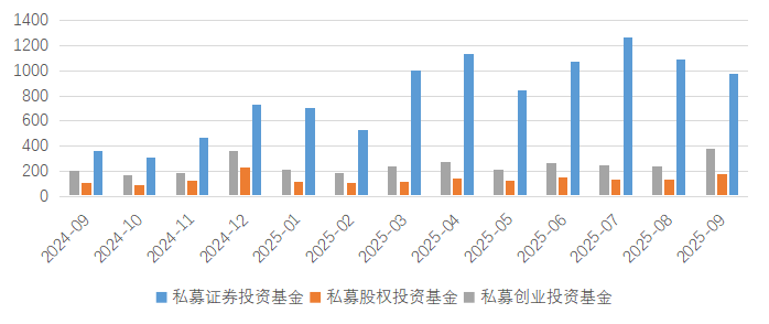 私募基金发行量,数据来源:朝阳永续研究院,数据截至2025/9/30