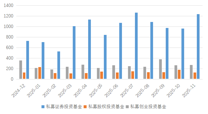 私募基金发行量,数据来源:朝阳永续研究院,数据截至2025/11/30
