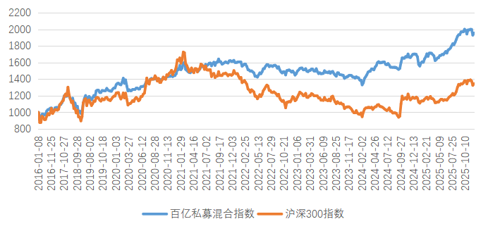 据周频净值统计的百亿私募混合指数11月(统计周期为2025/10/31-2025/11/30)收益为-1.77%,同期沪深300收益-2.46%,今年以来收益分别为17.27%和15.04%(统计周期为2024/12/31-2025/11/30)。